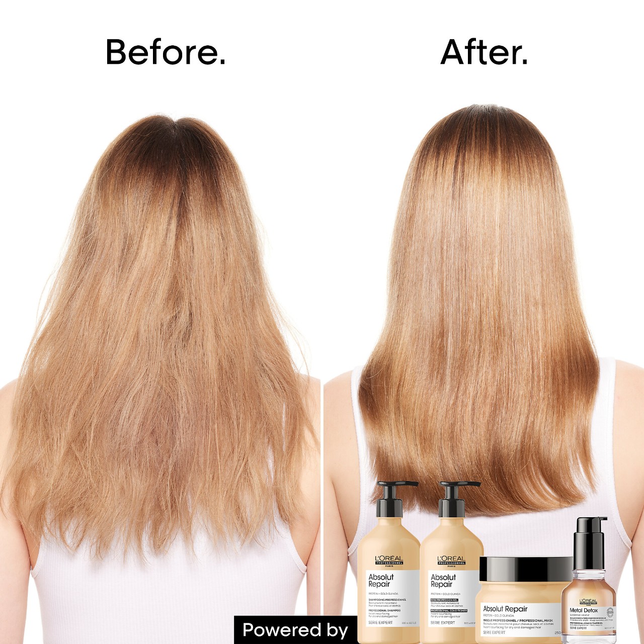 Combined with Absolut Repair Conditioner, Masque or Golden Masque, hair is left shinier and smoother.
